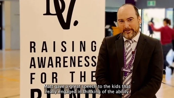 Meet Matt De Gruchy, a blind speaker, disability advocate, and the owner of MDV Clothing. Diagnosed with Stargardt's disease at the age of nine, Matt faced adversity, bullying and stereotypes, leading him to use his platform to promote inclusion and kindness in the disability space. Through speaking engagements and MDV events, Matt passionately believes that individuals of all abilities should have access to every opportunity, encouraging everyone to dream big. Overcoming personal struggles, Matt emerged as an inspiring advocate, challenging perceptions and championing true diversity, equity, and inclusion. His transformative journey reflects a story of self-discovery and resilience, motivating others to embrace their potential and live fulfilling lives and kick goals.
